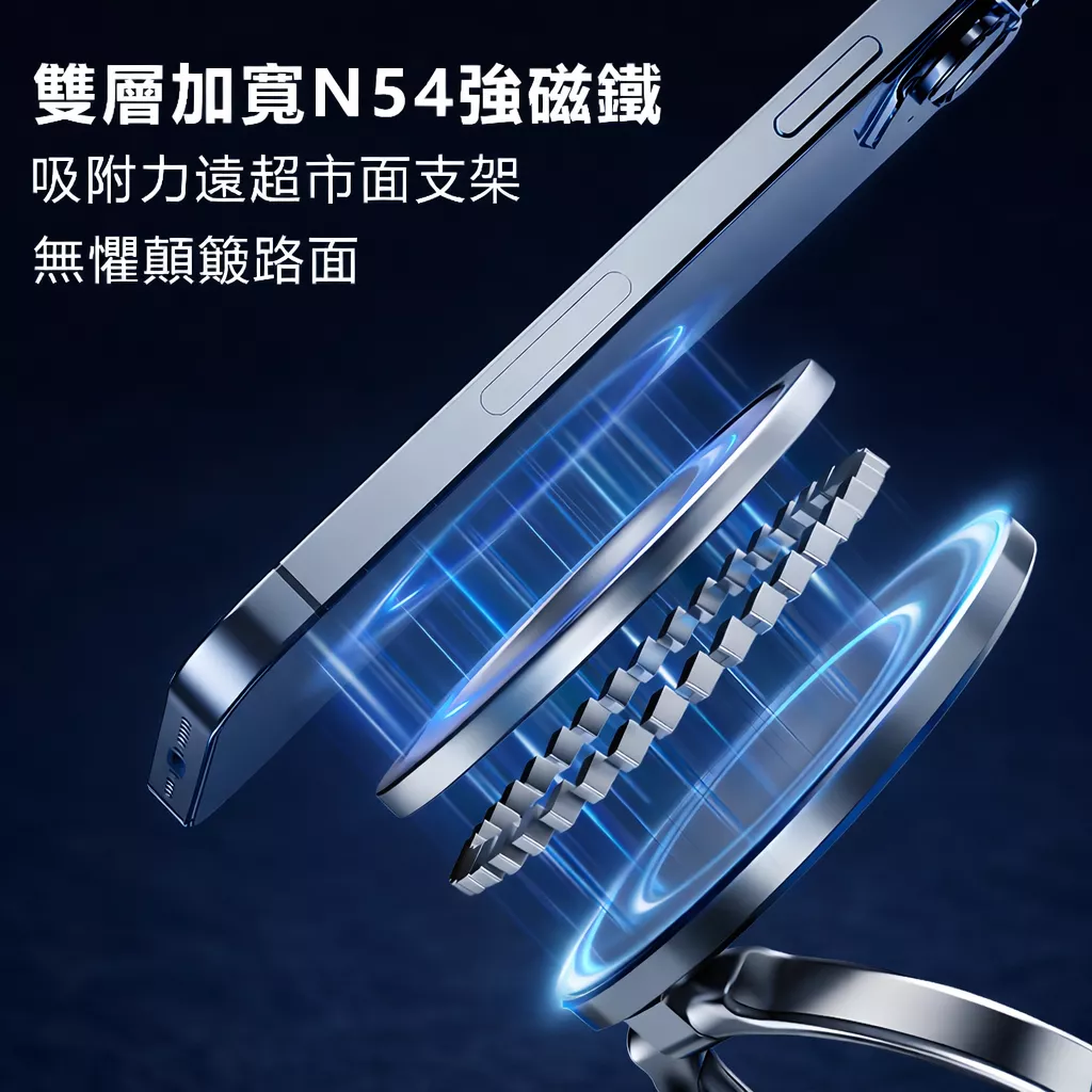 強磁吸:表面強磁鐵,吸附手機更穩固。
